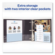 Discover sturdy simplicity in a convenient, lightweight package. Showcase View Binder offers an economical solution to your organization needs. Textured clear cover hides surface damage resulting from normal use. Put your personal stamp on the binder by designing a customized cover and spine with free, easy-to-use templates from Avery® Design & Print. Round rings are mounted on the back cover for a clean spine and pages lie flat. Tuck handouts, pamphlets and other loose or unpunched paperwork into the two interior pockets for easy access. Perfect for light-use, this slim binder is the friend your papers never knew they were missing.