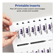 Simple-to-use insert sheets are the smart way to make name badges. Use to refill any 1" x 3" Mighty Badge® Professional Name Badge Kit. By simply replacing an insert, you have a new badge in seconds at a fraction of the cost of paying for a permanent alternative. Great for changes in job titles or staff turnover.