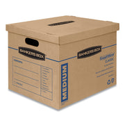 Bankers Box SmoothMove Classic Moving and Storage Boxes feature easy set-up—no tape required for box assembly. Convenient lift-off lid. Easy to carry handles. Durable, double end, double bottom, 32 ECT B-Flute Kraft corrugated board construction. Reusable and recyclable. Perfect for use in the office, home, school, or wherever you would like to move and store important papers, documents or any items.