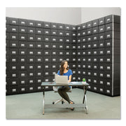 Stacks ten high for maximum space savings. The higher the drawer system stacks, the more space, time and money you save. Steel framework interlocks vertically and horizontally to withstand the heaviest day-to-day usage. The strongest system made by Fellowes® is also the easiest to assemble. Drawers snap together with poly-lock technology and are reinforced with steel wire. Steel frame and reinforced drawers ensure full drawers open and close smoothly. Factory installed, high-impact drawer handle with index card holder for fast file retrieval (index cards included).