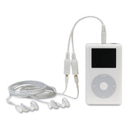 The Belkin® Speaker and Headphone Splitter adapter M/2F audio cable enables connecting two speakers or headsets to one jack. It provides a simple way to connect two mini-stereo speakers to an iPod®, iPad® or other handheld device for stereo sound. It also allows you and another person the ability to have multi-listening, video, or gaming pleasure by merely connecting two headsets to a single device. The 3.5 mm splitter comes with a 1/8" male mini plug and two 1/8" female ends for natural listening pleasure with a partner. The Belkin® Speaker and Headphone Splitter doesn't just play left and right channel audio, but sends a stereo signal to both points of the splitter. You can take the double earphone adapter with you on an airplane and watch the same movie on the same device with your travel partner. Multiple applications using the Belkin® Speaker and Headphone Splitter offer limitless capabilities with functions like using the splitter with your car's AUX port to enjoy music.