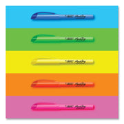 Whether you’re organizing your notes or underlining passages in a textbook, BIC Brite Liner Highlighters make highlighting fun and easy. These highlighters come in a highly visible, fluorescent color, allowing you to easily color-code and emphasize information. Each highlighter has a versatile, firm chisel tip that allows you to seamlessly switch between broad highlighting and precise underlining. BIC Brite Liner Highlighters can be left uncapped for up to eight hours without drying out. And thanks to their convenient pen-shaped design, these flourescent highlighters are easy to grip and use.
