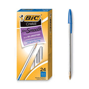 BIC Cristal Xtra Smooth Ballpoint Pen Value Pack, Stick, Medium 1 mm, Blue Ink, Clear Barrel, 24/Pack