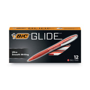 BIC GLIDE Ballpoint Pen, Retractable, Medium 1 mm, Red Ink, Red Barrel, Dozen