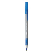 BIC Round Stic Grip Xtra Comfort Ballpoint Pen, Easy-Glide, Stick, Medium 1.2 mm, Blue Ink, Gray/Blue Barrel, Dozen