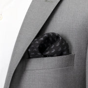 This 100% Silk pocket square features diagonal lines of grey bicycles printed on a solid black background. Fold in a traditional design or come up with your own to match your personality. An accessory that keeps on going and going.