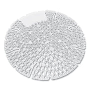 40% more fragrance and surface area than a traditional vinyl urinal screen. It is made from a specially engineered copolymer that is impregnated with a powerful organic odor-counteracting compound. It incorporates a two-sided anti-splash texture, preventing splash back and cross-contamination of urine to other areas outside the restroom. Flexible for a proper fit to any urinal contour. The translucent design offers a clear view of the drain to ensure it remains free-flowing as it collects debris before the drain is clogged. Safe for use in waterless urinals as well.