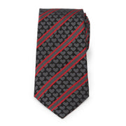 If bright pink heart balloons and giant stuffed teddy bears aren't your thing, celebrate Valentine's Day in your own way with this refined black and red 100% silk tie. Rows of gray hearts sit in contrast to ribbon stripes of ruby red and a pure black background, making this the necktie equivalent of a single elegant red rose.