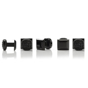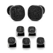 Black Stainless Steel Black Crystal Cufflink and 5-Stud Set