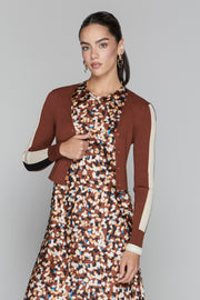 The Blake Cardigan features bold striped sleeves for a modern twist. This versatile, cropped knit cardigan is designed with a flattering V-neck and crafted from high-quality ribbed knit fabric. Perfect for layering, it effortlessly adds a touch of sophistication to any outfit. Pair it with the Blake Dresses for a coordinated, polished look.