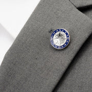 Never get lost in your bedroom closet again. Navigate your way out of any tricky situation with this attractive compass lapel pin. Designed to look like an authentic compass, the blue enamel adds a pop of color to your lapel, and the high polish finish gives it a sleek look. Silver plated base metal with clutch back closure.