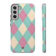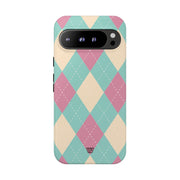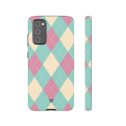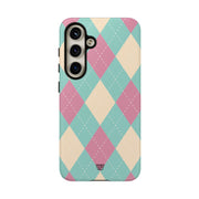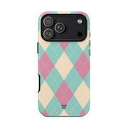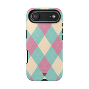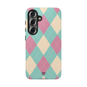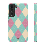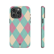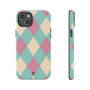 BLUE PINK BEIGE ARGYLE | Tough Phone Case