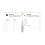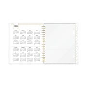 Design your life with Day Designer, the simple and easy system created to help users find balance and productivity. Includes introductory letter from Whitney English, worksheets for personal goals and intentions, dated calendars, yearly overviews, holidays and notes. Daily calendar view per page contains Today's Schedule in 30 minute increments from 6 am to 8 pm, To-Do list, Today's Top Three, Notes, Gratitude section, and an inspirational quote. Monthly calendar view per two-page spread offers a visual overview of your time plus a Notes and To-Do column. A flexible frosted cover adorns the outside while twin-wire binding and durable, coated tabs offer easy page turning and access to past, present and future months. Includes six bonus monthly views (July - Dec).