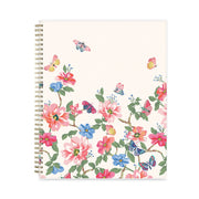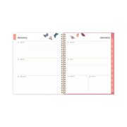 Frame your plans with elegance. Butterflies flit across this beautiful Fly By cover and bring peace to your busy schedule with its graceful pink and blue florals on a cream background. Two-page-per-week spread features lined daily blocks. Monthly view per two-page spread includes a Notes section for important projects. Monthly tabs are coated for durability. Durable, frosted flexible front cover. Twin-wire binding offers easy page turning. Includes pages for Yearly Goals, Contacts, Reference Calendars, and extra Notes pages. Thick, premium quality pages reduce ink bleed-through. Includes six bonus past monthly views for easy yearly transition (July-Dec).