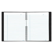 Durable hard cover provides increased writing stability. Twin-wire binding allows book to lie flat when open. Includes self-adhesive tabs to customize index, cover and spine. Microperforated pages. Ruled with space for date at top. Double-sided pocket.