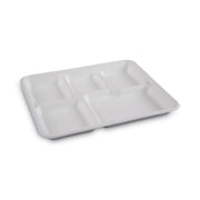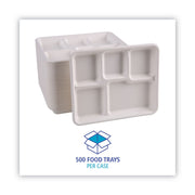 Boardwalk Bagasse Dinnerware, 5-Compartment Tray, 10 x 8, White, 500/Carton