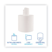 Boardwalk Center-Pull Roll Towels, 2-Ply, 7.6 x 8.9, White, 600/Roll, 6/Carton