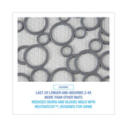 Unique and contemporary commode mat provides an upscale look to catch and neutralize urine splatters. It's perfect for unisex bathrooms and men's rooms without urinals. It absorbs and neutralizes twice as much urine as other mats. Thoughtfully designed with a non-slip tacky bottom layer that seals the urine in and protects floors. Every mat is embedded with NeutraTech™, a mold inhibitor and specially designed odor counteractant for urine. Indicator system reminds you when to change it for timely maintenance without waste.
