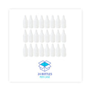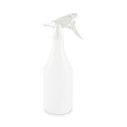 Clear bottle with embossed scale encourages user to properly proportion chemicals from larger containers and when mixed with water. Sleek, tapered neck bottle provides a more comfortable grip when used with a trigger sprayer. Easy-to-use, multi-purpose bottle for general-purpose cleaning in kitchens, bathrooms, offices, schools, and industrial settings. Securely holds cleaning solvents and water without spilling. Trigger sprayers sold separately.