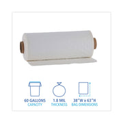 Boardwalk Industrial Drum Liners Rolls, 60 gal, 1.8 mil, 38 x 63, Clear, 1 Roll of 75 Bags