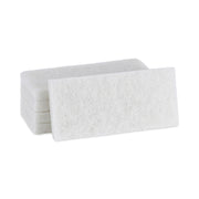 Medium thickness, light-duty, white scouring pads are the perfect cleaning tool for light-duty cleaning jobs. The textured pads provide more scrubbing power than a sponge or cloth, but are less abrasive than heavy-duty scouring pads. Strong and durable pads are ideal for surfaces in kitchens and bathrooms. They can be used to clean glass, stainless steel, porcelain, chrome, copper and ceramic surfaces. Won't scratch or dull most surfaces. Compatible with Boardwalk® Swivel Pad Holder (sold separately).