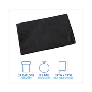 Boardwalk Linear Low Density Industrial Can Liners, 33 gal, 0.6 mil, 33 x 39, Black, 200/Carton