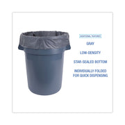 Linear, low-density polyethylene provides industrial strength performance. Puncture and tear resistance for added durability. Sturdy, star-seal bottom helps prevent leaks and keep heavier loads inside the bag. Individually folded for quick and easy dispensing. A quality can liner that provides trusted waste collection at an economical price. Individually folded in carton for quick and easy dispensing.