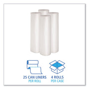 Can liner with equivalent strength of 2.0 mil liner. Perforated roll for easy dispensing. Coreless rolls save space and material.