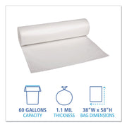 Boardwalk Low Density Repro Can Liners, 60 gal, 1.1 mil, 38" x 58", Clear, 10 Bags/Roll, 10 Rolls/Carton