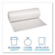 Boardwalk Low Density Repro Can Liners, 60 gal, 1.75 mil, 38" x 58", Clear, 10 Bags/Roll, 10 Rolls/Carton
