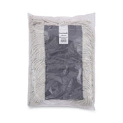 Four-ply, pretreated yarn, dust mop head. Equipped with a slot pocket backing which allows a metal dust mop frame to slide into its place quickly and easily. Sewn center fringe for added coverage and durability. The disposable head can be discarded when dirty. Ideal for use on floors that require dusting, with or without cleaning spray. Handle and frame are sold separately.