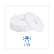 Boardwalk Polishing Floor Pads, 13" Diameter, White, 5/Carton