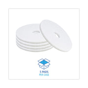 Boardwalk Polishing Floor Pads, 16" Diameter, White, 5/Carton