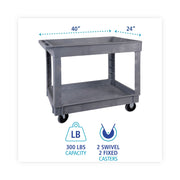 Boardwalk Two-Shelf Utility Cart, Plastic, 2 Shelves, 300 lb Capacity, 24" x 40" x 31.5", Gray