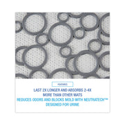 Unique and contemporary urinal mat provides an upscale look to catch and neutralize urine splatters. It's perfect for men's washrooms and locker rooms. It absorbs and neutralizes twice as much urine as other mats. Thoughtfully designed with a non-slip tacky bottom layer that seals the urine in and protects floors. Every mat is embedded with NeutraTech™, a mold inhibitor and specially designed odor counteractant for urine. Indicator system reminds you when to change it for timely maintenance without waste.