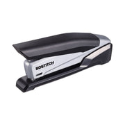 With One-Finger™ technology, make stapling 80% easier—just the push of a finger staples up to 28 sheets. Cleverly integrated into the stapler is a staple remover for quick fixes, and a staple-storage compartment in the base keeps two full strips of staples close by for immediate reloading. Sleek, die-cast metal housing with the handle's soft, non-slip grip allow for comfortable use whether stapling on a desktop with one finger or whether stapling with it held in the palm of your hand. Smooth, jam-free operation. Opens for bulletin board tacking. Rubberized base for stability and table-top protection. 28 sheet capacity. Full-strip (210) staple capacity. Uses standard staples. Antimicrobial properties built-in to protect the product with Agion® silver ion-based agent. Agion® is a registered trademark of Sciessent®.