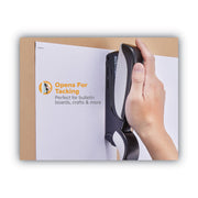 Paperwork can be a hassle, but stapling it shouldn't be. With the One-Finger™ spring-powered technology by PaperPro, experience fast and easy, jam-free stapling when you need it most at school, work, or the home office. 80% easier than standard staplers, all it takes is the press of a finger to fasten up to 25 sheets. Sleek and durable, the die-cast metal housing delivers long lasting performance. With an ergonomic design that positions perfectly in the palm of your hand, comfortably staple without missing a sheet. Opens for bulletin board tacking and craft use. Full strip (210) staple capacity; uses standard staples. For optimal performance, use Bostitch Premium Standard Staples (1901).