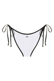 Introducing our stylish Brickell Chic bikini bottom, designed to elevate your swimwear collection with its chic aesthetic and thoughtful details. This eye-catching piece features a crisp white fabric beautifully accented by a bold black contrasting border, creating a sleek and modern silhouette that flatters every body type.