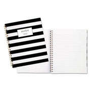 Durable hardcover notebook is designed for daily use, with classic black-and-white striped cover and gold accents. Ruled pages keep handwriting neatly aligned and include a date box for added convenience. Each page is perforated for clean and easy removal. Notebook is wirebound with gold twinwire binding to add style. The black-and-white striped notebook is bold and classy with a front cover that features the word “notes" stamped in gold along with the Cambridge® brand name. High quality white paper with black ruling meets all your notetaking needs.