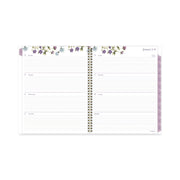Stay on top of all of your plans this year with the Cambridge Summer Garden Weekly/Monthly Planner. Delicate flowers dance on a white background. Planner covers 12 months from January to December. One week per two-page spread has ruled planning space and a section for notes and reminders. One month per two-page spread has ruled daily blocks, a notes section, past/future month calendar references and a tab for easy navigation. Special pages include a three-year reference calendar, holiday list, two future planning, five notetaking pages and a double-sided poly pocket to store loose sheets. Durable poly cover stands up to wear and tear. Gold twin-wire binding prevents snags and keeps pages secure.