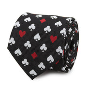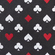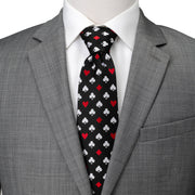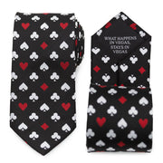 This bold black tie is peppered with classic red and white playing card suits - hearts, spades, diamonds, and clubs - for a look that channels all the thrill of the Vegas strip. Hidden just beneath the back is a cheeky embroidered message: “What Happens in Vegas, Stays in Vegas.” A secret only you (and maybe the pit boss) will know. Perfect for poker nights, bachelor parties, or your next lucky streak.