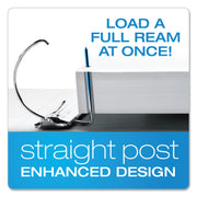 Straight post loads contents easily, without damage. Ideal for multiple presentations and reports. Ring design removes the hassle of maneuvering sheets over the curve, while protecting them from damage during loading/unloading. Locking rings hold contents securely. PVC-free poly material will not stick to cover inserts or materials stored inside. Safe for all documents including photographs. Clear, non-glare overlay for customization on all three sides. Horizontal interior pockets for quick and convenient storage.
