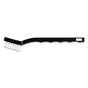 Carlisle Flo-Pac Utility Toothbrush Style Maintenance Brush, White Nylon Bristles, 7.25" Brush, 7" Black Polypropylene Handle