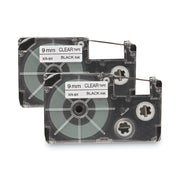 Casio Tape Cassettes for KL Label Makers, 0.37" x 26 ft, Black on Clear, 2/Pack