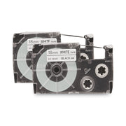 Casio Tape Cassettes for KL Label Makers, 0.75" x 26 ft, Black on White, 2/Pack