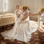 Chantilly Floral Lace Long Robe Set with Train - Next Day Shipping