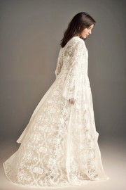 Experience romance and elegance with ourĀ Chantilly Lace Long Robe with Silky Satin Nightgown. This luxurious set features a delicate Chantilly floral lace robe that flows gracefully, complemented by a matching silky satin nightgown for a stunning layered look. The intricate lace detailing adds a touch of sophistication, making it perfect for special occasions, bridal celebrations, or intimate evenings at home.