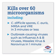 Healthcare professionals trust Clorox Healthcare Bleach Germicidal Wipes to help them overcome infection control challenges in a constantly changing healthcare environment. Clorox Healthcare Bleach Germicidal clinical wipes are ready to use, 1 step cleaner containing a 1:10 bleach dilution to meet CDC and OSHA guidelines for disinfecting surfaces in healthcare settings. Designed for daily disinfection, high-touch surfaces and medical equipment. These wipes are EPA registered to kill a total of 58 microorganisms, including HAI causing bacteria like MRSA and VRE in 30 seconds, outbreak causing viruses such as Influenza A and B viruses, Measles virus and Norovirus in 1 minute and C. difficile spores, TB and fungi in 3 minutes. These wipes kill 99.9999% of C. difficile spores, according to the current EPA recommended testing standard (June 2014). These wipes are engineered minimize residue and leave less visible residue on surfaces vs. competitor bleach wipes. They are formulated with an anticorrosion agent and are compatible with common healthcare surfaces including stainless steel, glass, plastic, porcelain, glazed ceramic, laminated surfaces and vinyl. Intended for use in healthcare settings.