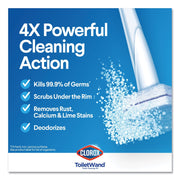 Clorox ToiletWand Disinfecting Refill Pack is preloaded with 4x the powerful cleaning action of Clorox Cleaner in every disposable cleaning head. The toilet wand system allows you to click a sponge like head onto the wand, scrub to unleash the preloaded cleaner, then toss the head away. These disposable cleaning heads kills germs, removes rust, calcium and lime scale while it disinfects, deodorizes and deep cleans with ease. Based on comparative lab tests, the toilet wand cleans better than a brush. The powerful disinfecting cleaning head is shaped so that you tackle every stain and every disgusting growth under the hard to reach areas of the bowl rim while killing 99.9% of germs like staphylococcus aureus, salmonella enterica, rhinovirus type 37 and influenza A. The Clorox ToiletWand Handle is sold separately. Ideal for use in offices, daycare centers, schools restaurants and other commercial facilities. Just click your way to a cleaner toilet with the Clorox ToiletWand Disposable Toilet Cleaning System.