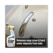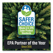 Powerful formula removes dirt, calcium, lime, hard water deposits, and soap scum on many surfaces in the restroom. Certified EPA's Safer Choice for safer chemistry means it is safe to use in high-traffic bathrooms on a variety of surfaces including toilets, faucets, tiled walls and floors, and countertops. The formula contains no bleach, ammonia, or alcohol and helps to reduce the number of chemicals on site!